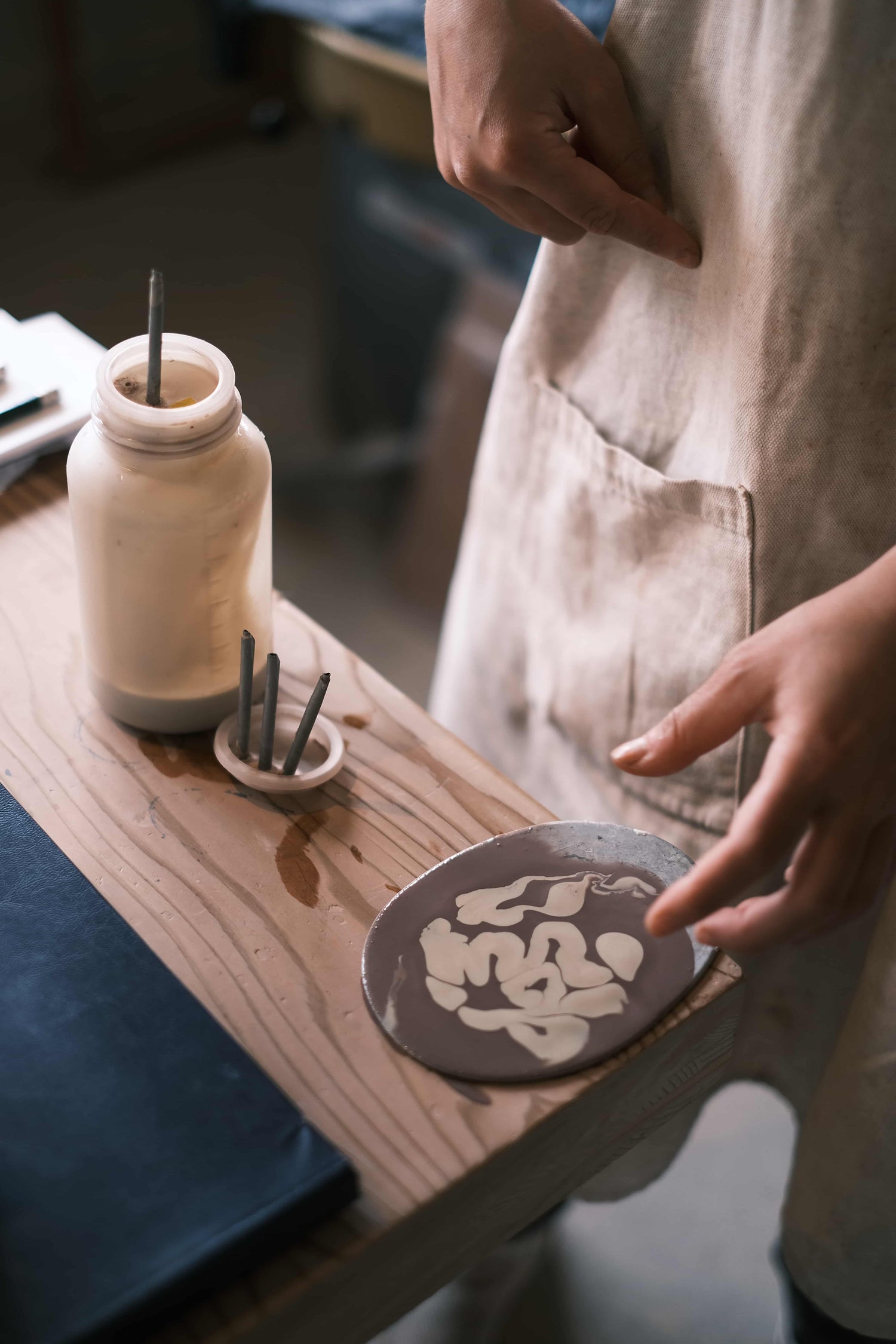 【スリップウェアを主にハンドメイド陶器を制作しているスタジオです】