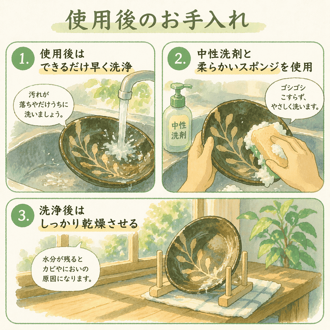 ・洗浄後はしっかり乾燥させる